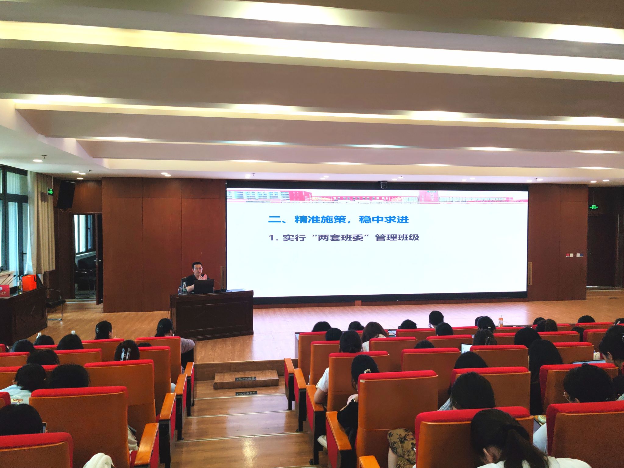 姜国栋老师强调,凝心聚力是共赴教育美好的基石,倡导以“细心”“虚心”“诚心”和“真心”,紧密联系科任老师和班级,更好地增强集体凝聚力。在具体策略上,他分享了精准施策、稳中求进的方法,包括创新实施“两套班委”轮值管理制度、优化学习小组建设,充分激发员工潜能。同时,他非常注重通过富有仪式感的活动来育人,详细介绍了开好“三会”——经验交流分享会、考试前动员大会和考后学情分析会——在营造积极进取氛围、促进互学互鉴和精准把脉学情方面的重要作用。最后,姜老师寄语未来的教师们要追求多元发展方能行稳致远,努力成为思考型的班主任,结合当下学情创新实践;成为研究型的班主任,持续优化班级管理机制;成为智慧型的班主任,妥善应对员工青春期问题;更要成为有服务心的班主任,以深厚的人文关怀滋养员工成长。