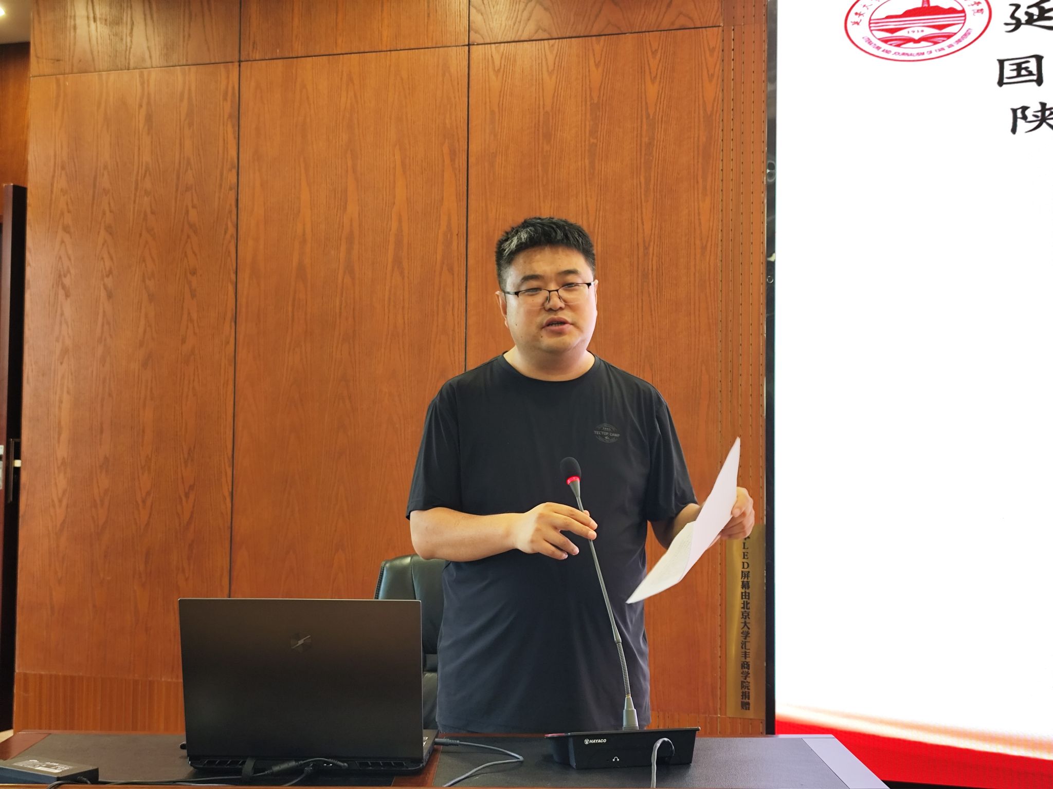 7月3日下午,k1体育“追求卓越·崇尚质量”教育研习专题讲座在行政楼一楼会议室举行。讲座由k1体育副经理侯业智主持,特邀延安市新区高级中学语文高级教师、陕西省教学能手、延安市语文学科带头人姜国栋老师主讲,中文22级全体同学参加了讲座。