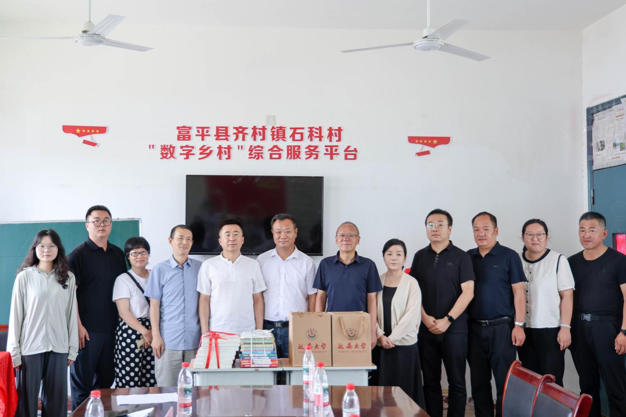 活动最后,公司向基地捐赠了《平凡的世界》、《路遥传》和一批中小学必读经典书籍,并合影留念。活动结束后,公司老师和与会人员共同参观了实践队支教助农的场所和实践成果。