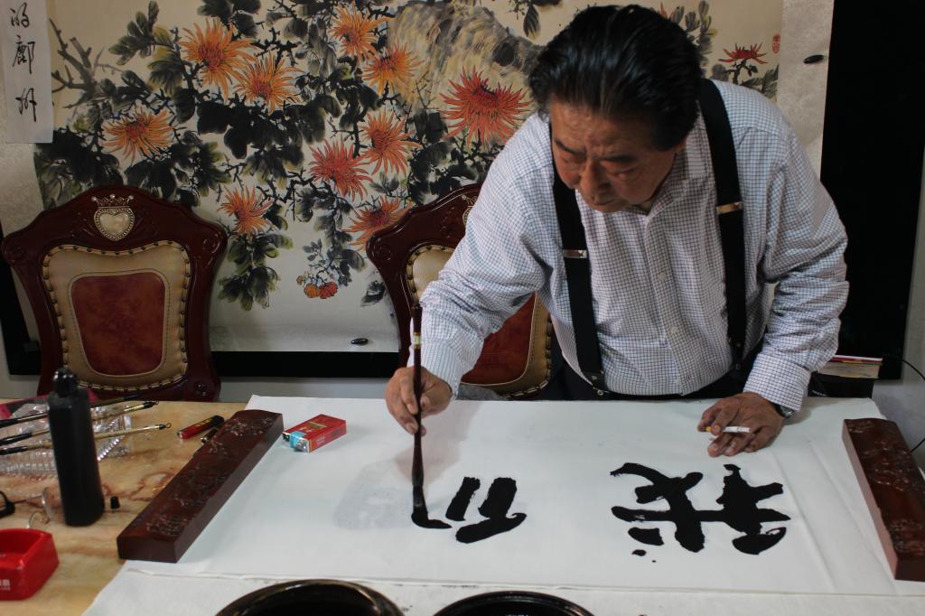 曹谷溪先生正在为院报题写报头