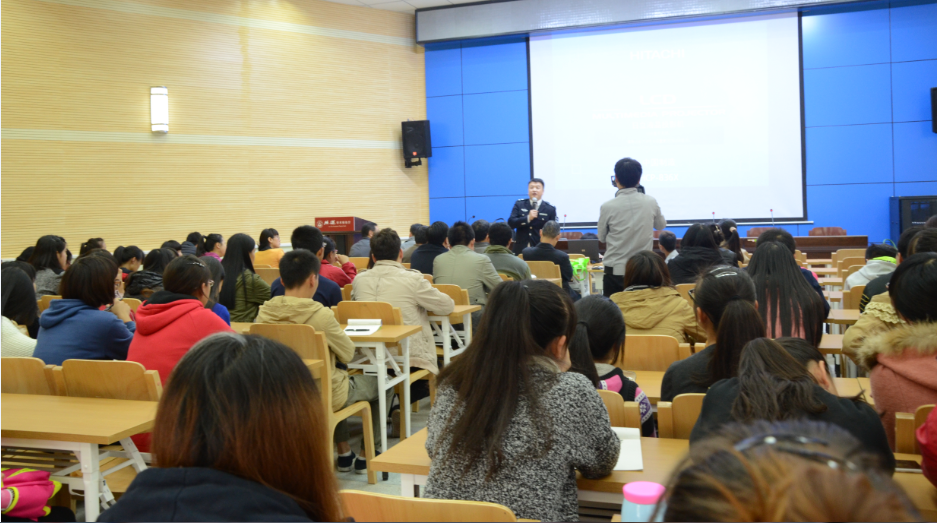 本网讯 为提高防火意识,增强消防技能。10月29日下午,西安五进消防知识科教站的刘丹教官在路遥文学报告厅对公司师生进行消防知识的培训。