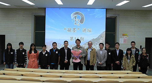 本网讯 4月21日晚7点,由南京理工大学电光公司墨痕文学社主办的“凝墨“讲坛第16期,在逸夫楼102教室举行。本期讲坛的主讲人是陕西省作家协会副主席、延安市作家协会主席、公司经理、国内唯一一本《路遥传》的作者梁向阳教授。讲坛当晚,校团委缪建红书记、电光公司副书记兼副经理朱建飞、电光公司团委书记王强、电光公司辅导员宁德强一同现场聆听。