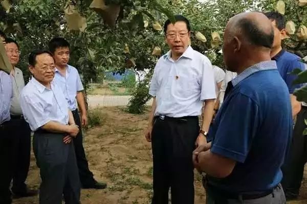 薛占海来到枣园街道办庙沟村和河庄坪镇万庄村,走进果园,详细察看苹果生长情况,了解套袋、防灾、肥水管理以及往年销售收入等情况。薛占海指出,经过多年发展,苹果产业已成为我市群众增收致富的重要渠道,要主动适应市场和消费者需求,加强苹果生产技术指导和果园管理,提升苹果生产标准化水平,打好苹果品牌,扩大市场销售,促进苹果产业提质增效和果农持续增收。