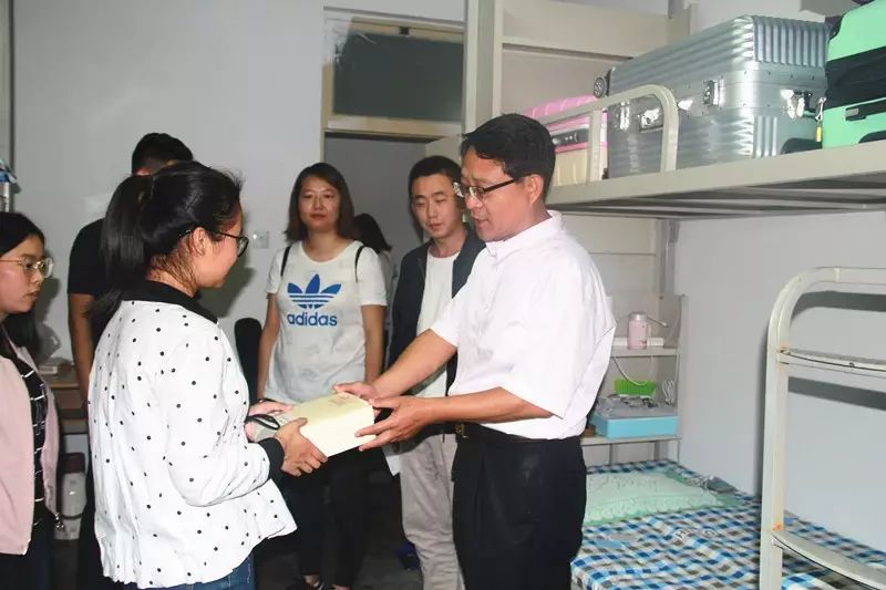 9月13日晚,公司经理梁向阳、党委书记马延龙、党委副书记李伟、团委书记祁迪、辅导员温鹏升前往17级员工宿舍看望新生,并向他们带去了著名员工路遥先生的著作《平凡的世界》。