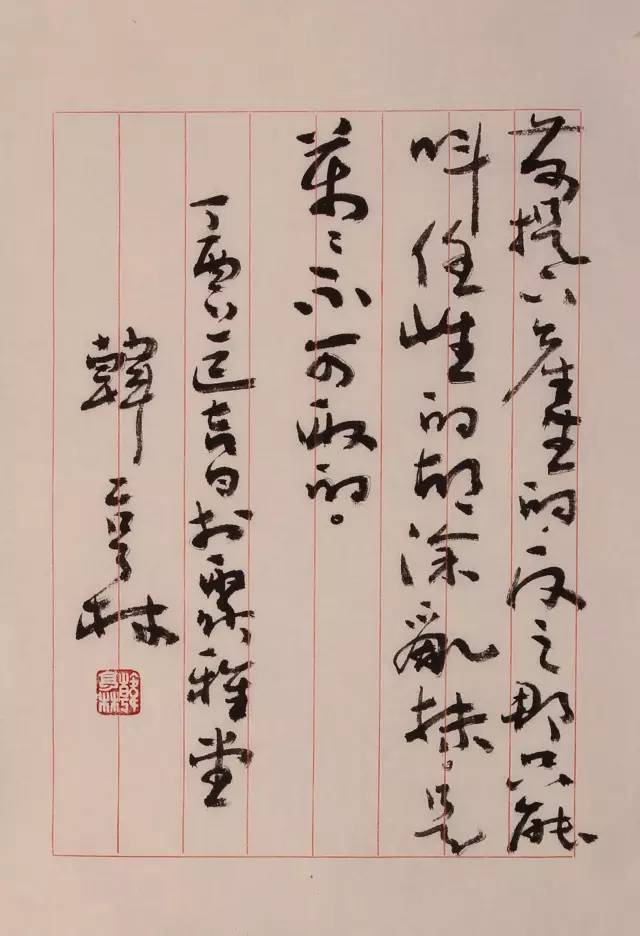 韩亨林先生的独特不仅仅因为他官居部级,位高权重,也不仅仅是因为他在书法上诸体皆能、名扬天下,得到沈鹏、张海等书坛大家的赞誉和肯定,而是可以从他的身上感受到一种强烈的平民情怀,是他能够身居要位,恪守职责,把履行工作和坚持爱好严格分开,并且做到极致。“书法是我钟爱的艺术,但那只是业余时间的事,永远要放在工作的后面,决不能为此耽误和影响工作”,因此,他的办公室从不置放笔墨纸砚,他说再大的爱好也要为工作让路。