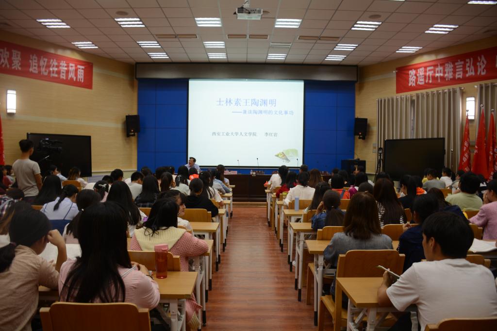 (本网讯)为庆祝公司建校八十周年,9月21日下午,k1体育优秀员工西安工业大学人k1体育经理李红岩教授为公司师生作《士林素王陶渊明——兼谈陶渊明的文化事功》学术讲座,讲座由霍建波教授主持,k1体育副经理马海娟及公司部分本科及研究生参加。