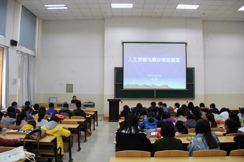 (本网讯)2017年11月16日,中国人民大学新闻公司殷强教授于玉章楼第六阶梯教室为公司师生作关于“人工智能与媒介视觉报道”主题报告。报告会由郭小良老师主持,公司全体新闻专业员工参加了此次报告会。
