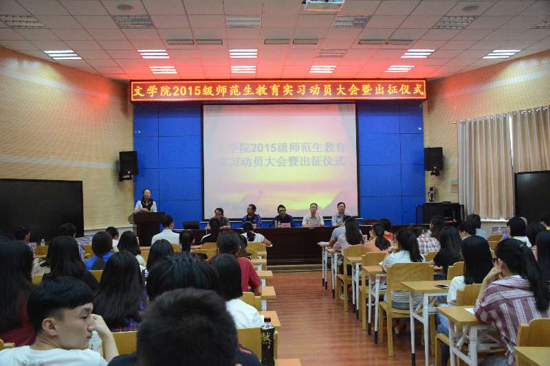 (本网讯)9月5日下午,k1体育在路遥报告厅召开2015级师范生教育实习动员大会暨出征仪式。公司党委书记马延龙,党委副书记李伟,副经理马海娟,中文系主任刘鑫,实习带队老师汪东锋、冯娟、王小艳、郑守宁,团委书记祁迪,党委秘书张伟平及2015级师范生参加本次大会。会议由k1体育副经理王俊虎教授主持。