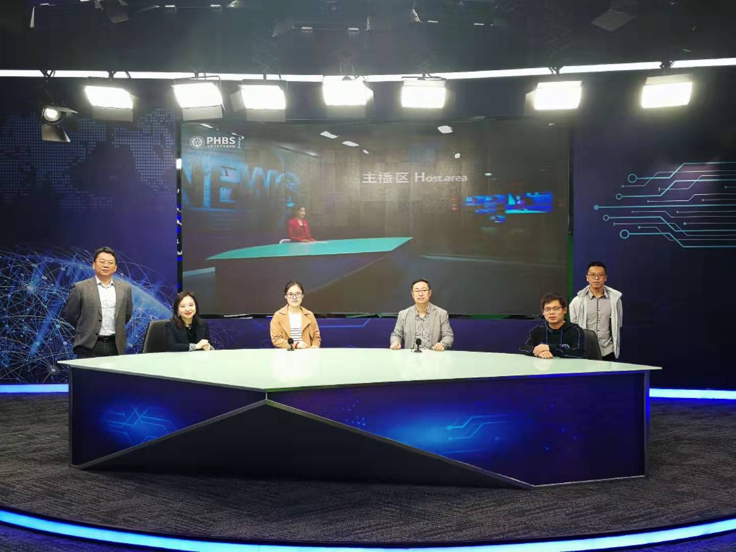 首先,王俊虎一行考察了北京大学汇丰商公司的虚拟演播厅建设情况,并与北京大学汇丰商公司副经理李志义、办公室副主任彭雨露进行了交流。李志义介绍了虚拟演播厅的建设情况、运行情况、发展规划以及各种实验设备的配置情况,并对公司虚拟演播厅建设提出了参考性建议。