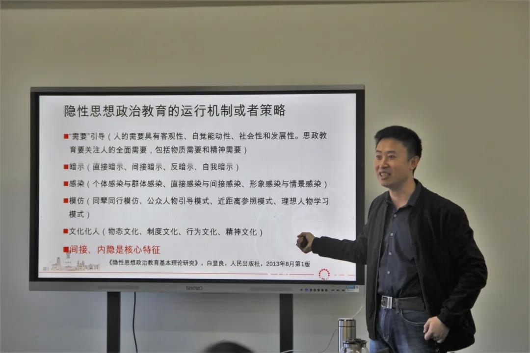 通过学习论、学习态度、学习的内外部条件、品德及隐形思政教育对学与教的原理进行了阐释。曹殿波老师强调:态度和品德都是后天形成的。并引出美国心理学家班杜拉提出的“社会学习理论”。表明个体是通过观察和模仿来进行社会学习的。态度学习作为社会学习的一种当然也不例外。最后说道:隐性思想政治教育的核心特征是间接和内隐。