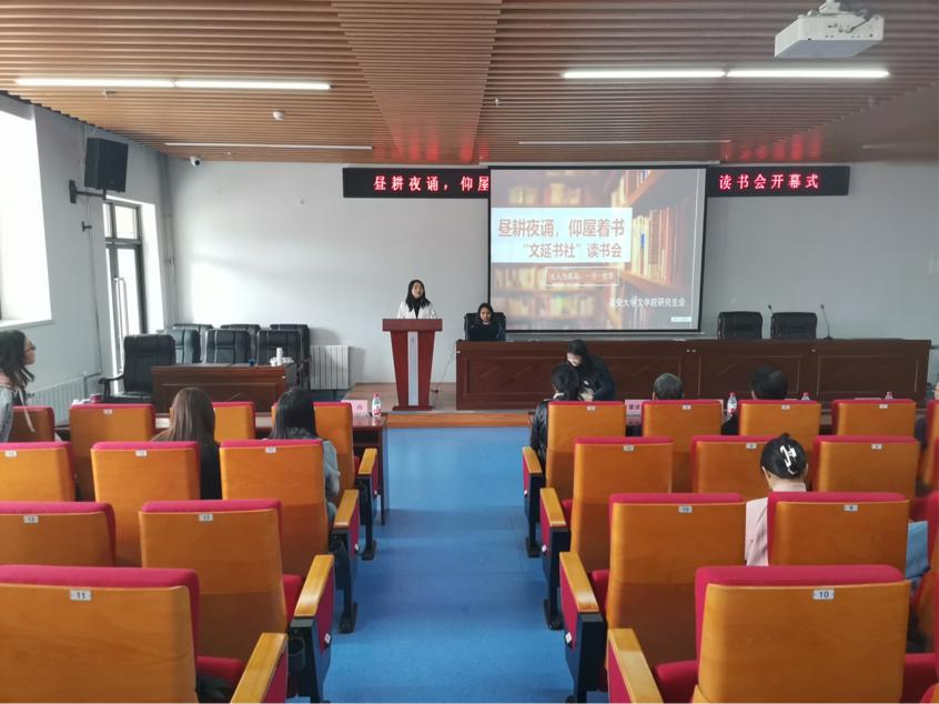 (本网讯)10月26日上午,k1体育研究生会在文学楼201学术报告厅举行了以“昼耕夜读,仰屋着书”为主题的“文延书社”读书会开幕式。梁向阳、孙鸿亮、霍建波、马海娟、刘鑫、宋珊、师瑞等导师出席开幕式,k1体育部分研究生参加了相关活动。开幕式由研究生会副主席朱文丽主持。