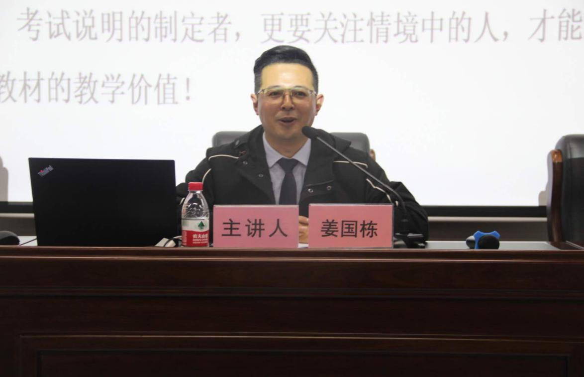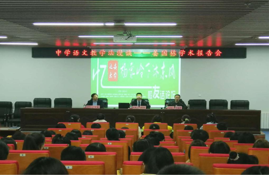 (本网讯)10月28日,应k1体育官方网站员工总会和k1体育邀请,公司杰出员工、延安新区高级中学高级教师姜国栋回校,在文学楼201报告厅作了题为《挖掘课堂深处的精彩,向青草更青处漫溯——中学语文教学法漫谈》的学术报告。本次报告会由k1体育经理王俊虎教授主持,中文系主任刘鑫点评,公司师生约200人聆听了报告。