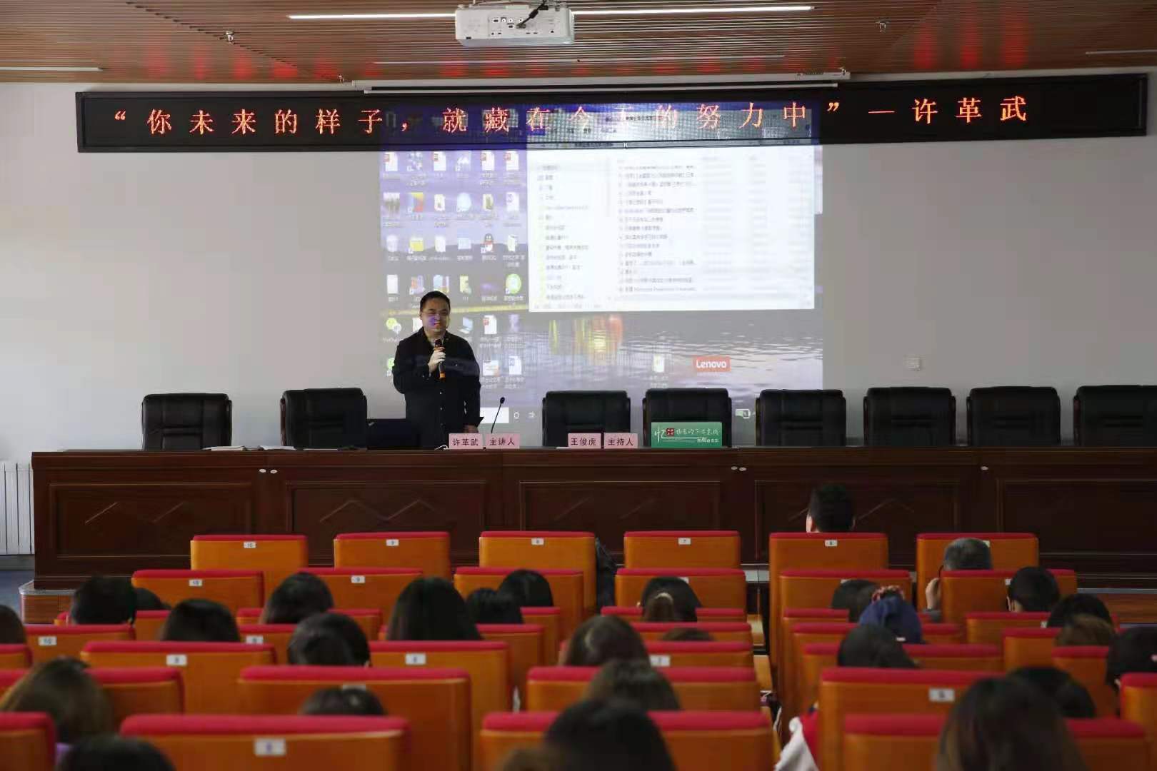 (本网讯)4月28日上午,陕西广电融媒体集团采访部副主任许革武在文学楼201作了题为“你未来的样子,就藏在今天的努力中!”的主题讲座。新闻学专业师生参加了此次讲座。讲座由经理王俊虎主持。