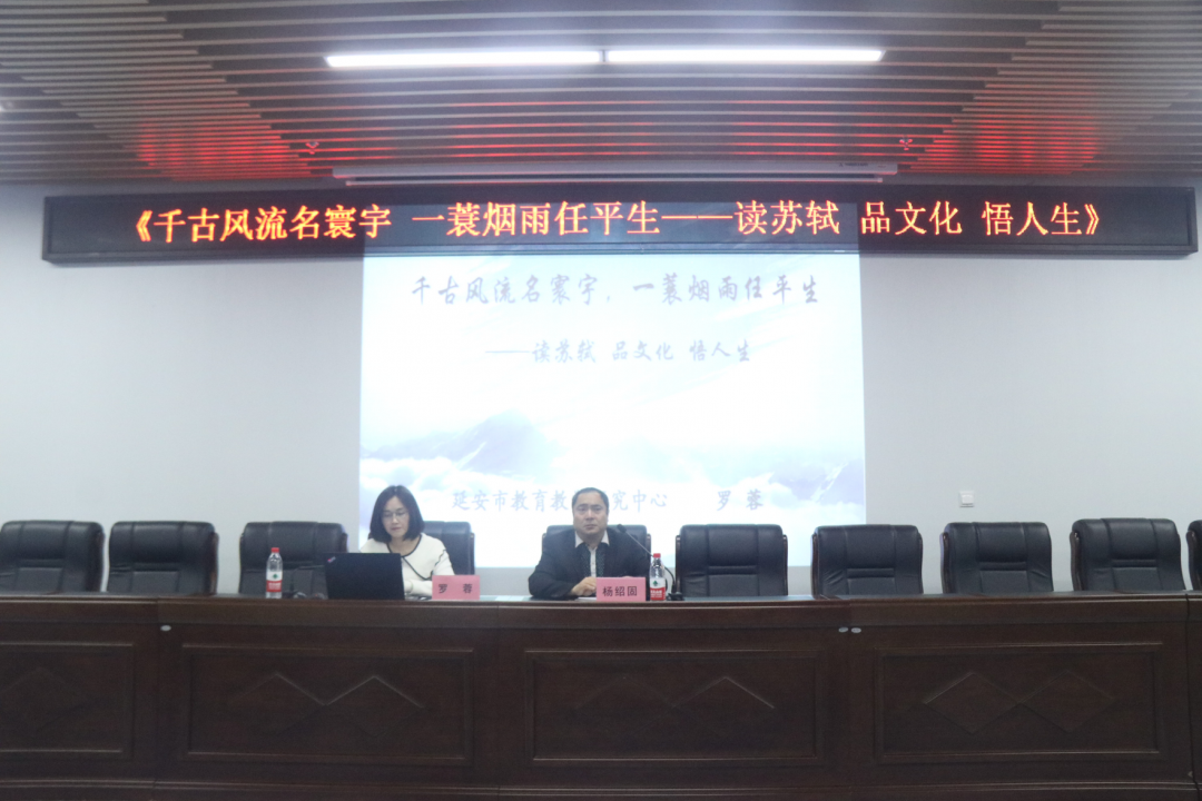 (本网讯)千古风流名寰宇,一蓑烟雨任平生。k1体育于5月19日晚在文学楼201报告厅举行了主题为“读苏轼,品文化,悟人生”的讲座。本次讲座由杨绍固副经理主持,陕西省教学能手、延安市中学语文教学研究会副秘书长、延安市教学研究中心罗蓉老师主讲,k1体育18级全体同学聆听了此次讲座。