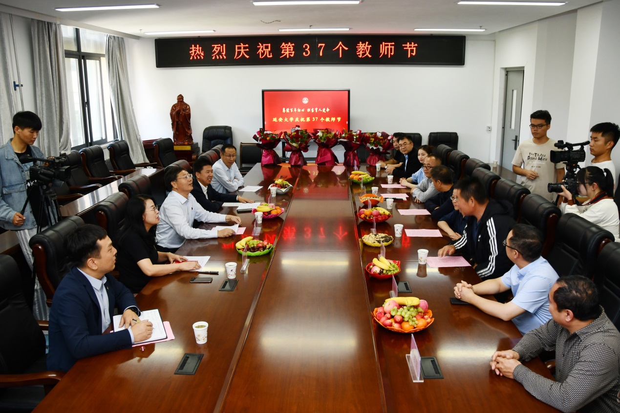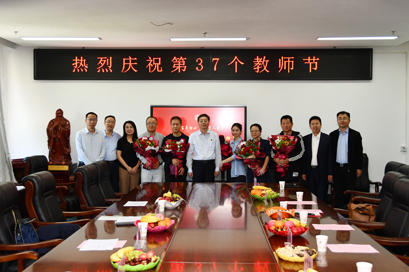 (本网讯)9月10日上午,在举国喜庆第37个教师节之际,公司党委书记张金锁教授在党政办主任李扬、人事处处长刘小淼、科研处处长王延峰的陪同下莅临公司看望慰问公司部分优秀教师代表并在文学楼408会议室召开了庆祝第37个教师节教师代表座谈会,座谈会由人事处处长刘小淼主持。