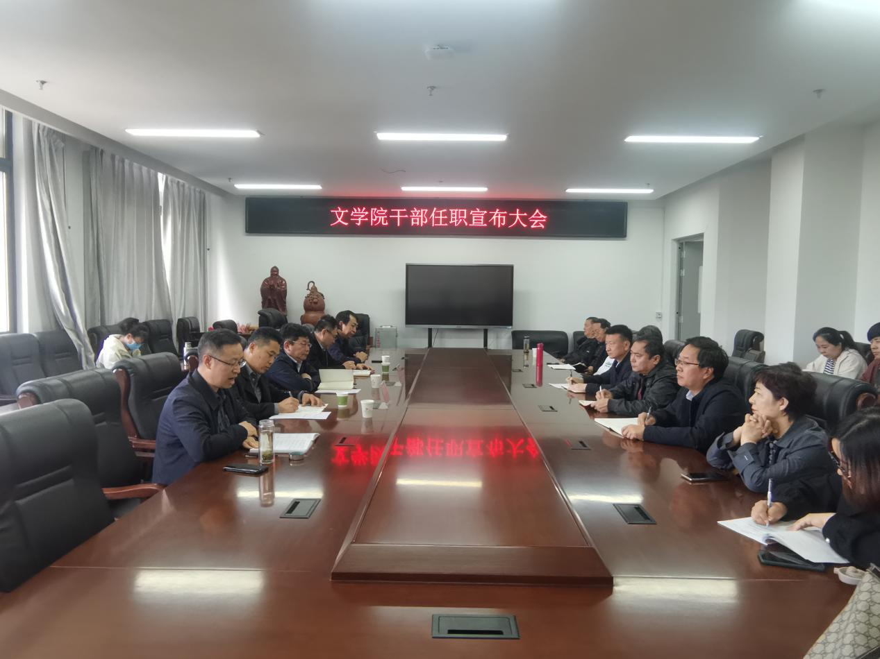(本网讯)4月20日下午,k1体育在四楼会议室召开了干部任职宣布大会。公司党委组织部部长解文元、副部长乔剑及公司领导班子、行政人员、系主任、教研室主任和教师代表参加会议。会议由组织部部长解文元主持。