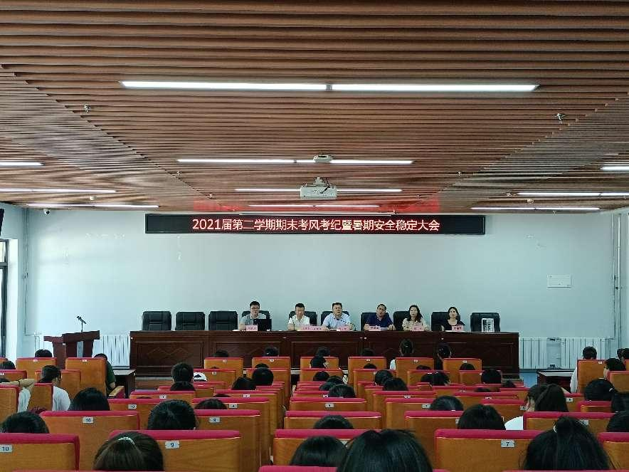 (本网讯)6月29日下午16时,公司组织2021级全体员工在文学楼201报告厅召开本学期期末考风考纪教育暨暑期稳定安全大会,出席本次会议的有公司党委书记党子奇,教学副经理杨绍固,辅导员祁迪、温鹏升、李朝琴,会议由公司党委副书记张冰雁主持。