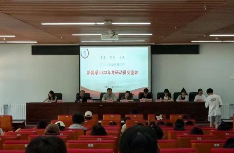 (本网讯) 6月9日下午,公司新闻系在201报告厅举办考研经验交流会。新闻系教授、公司党委书记党子奇,新闻系郭小良、任勇胜,19级考研员工李缠缠、郝晶晶、邵佳豪、陈雨薇、于雅婷、樊可心和新闻系全体同学参加活动。活动由郭小良主持。