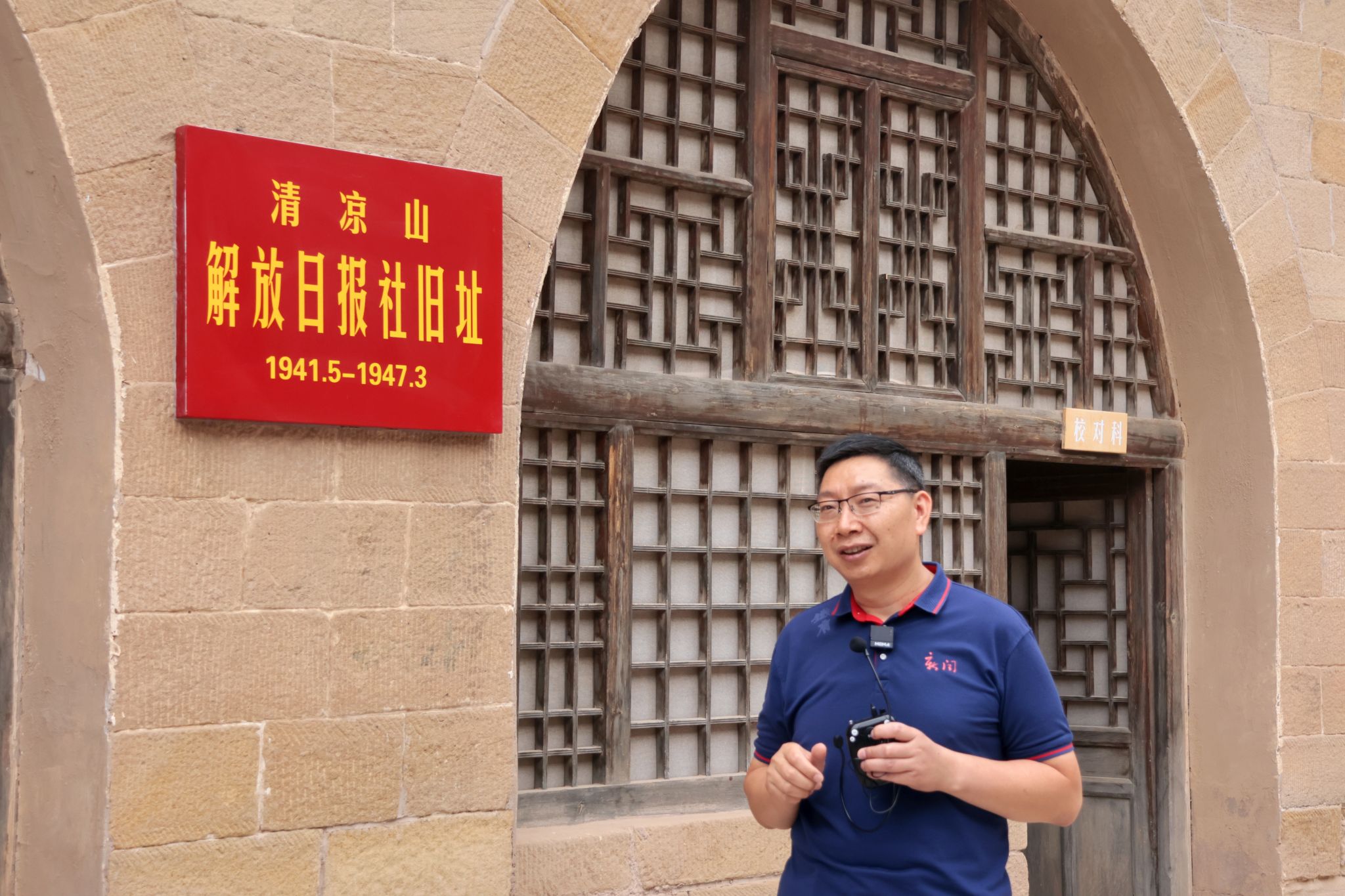 在《解放日报》旧址,邓绍根为两校师生讲述了党的纪念日确立的历史来源。他讲到,“1941年6月,中共中央发文规定明确,7月1号为党成立的纪念日。” 而7月1日我党的生日正是在延安确定并通过《解放日报》传播向全国,今天我们在党的102周年生日齐聚延安这片革命热土,追寻党的光辉历程,更具有着深远的意义。