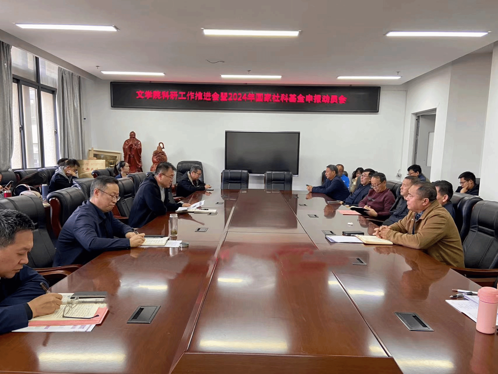 (本网讯)10月11日下午,k1体育在公司会议室召开科研工作推进会暨2024年度国家社科基金项目申报动员会,院领导班子成员、全体教职工参加会议,会议由王俊虎经理主持。