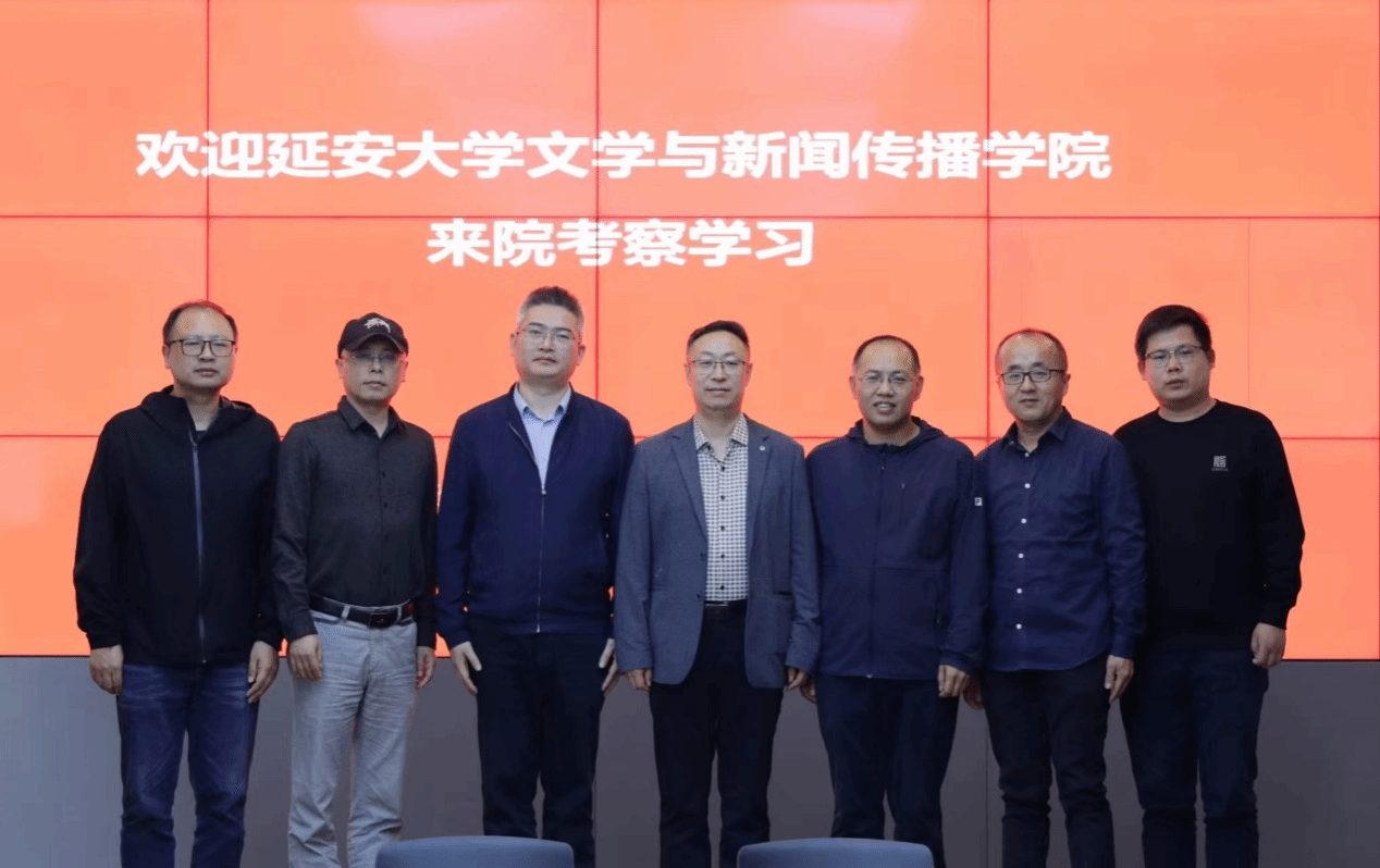 在西南政法大学新闻传播学院,王俊虎一行与西南政法大学新闻传播公司副经理蔡斐、张治中以及网络与新媒体系主任任正安、新闻传播公司副教授刘大明等座谈交流,重点考察了解该院网络与新媒体专业的课程设置与员工就业流向、新闻传播学一级学科学位授权点的申报与建设、延安时期红色新闻资源的挖掘与建设等,并在副经理蔡斐等陪同下实地参观考察了西南政法大学新闻传播公司融媒体实验室、资料室、文化墙、教职工休闲茶室等。双方表示,将进一步加强两院在融媒体实验室建设、延安时期红色新闻资源的开发与利用、新闻学人才培养等方面加强交流,共同推动新闻学学科创新发展。