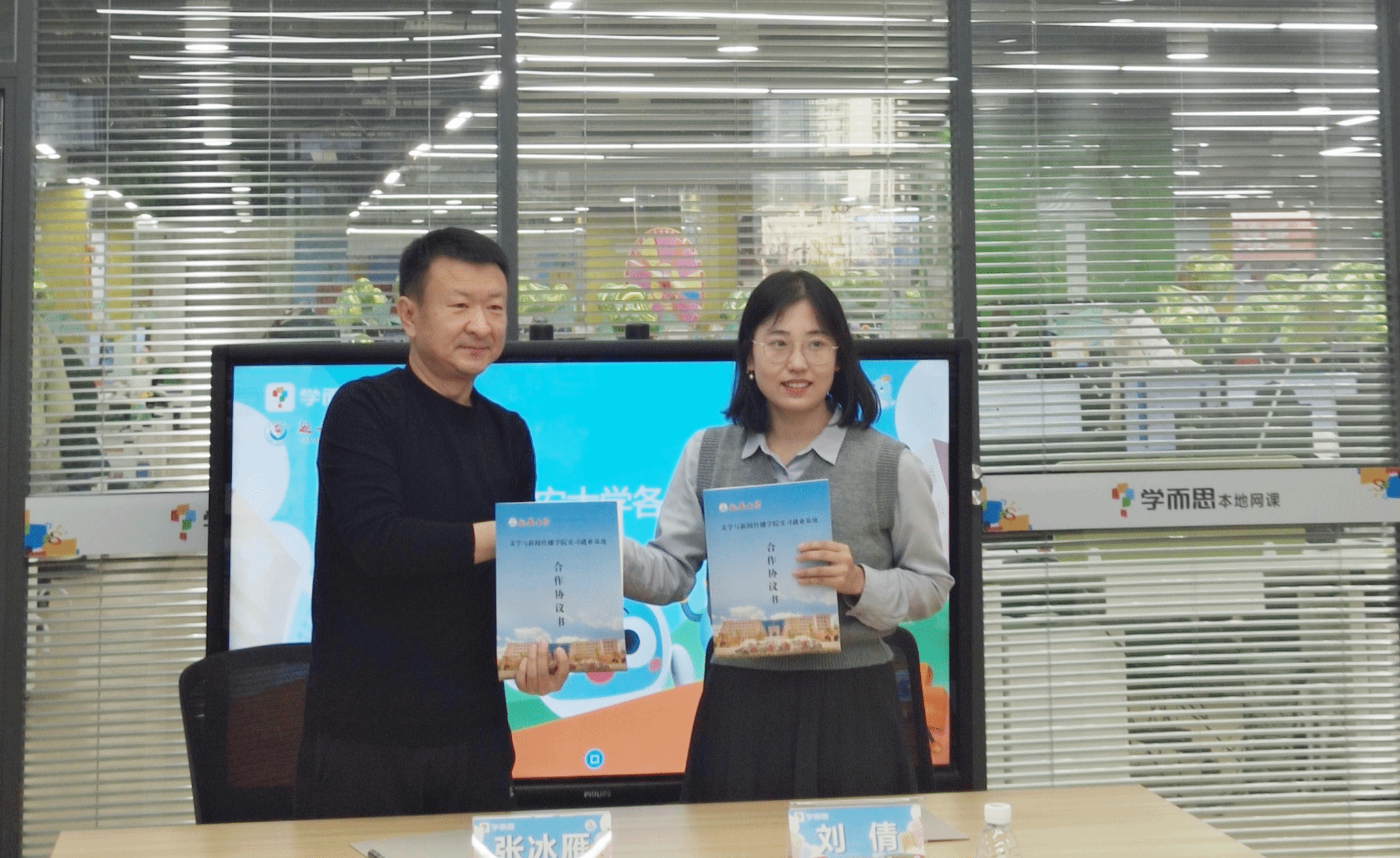 12月1日下午,回访组一行又前往好未来教育科技有限公司学而思西安基地开展座谈交流,基地HRBP刘倩首先就企业的发展历史与运营情况做了分享,员工雷丹做了课程教学培训分享,李双、胡漫玉就个人职业培训、成长发展与工作规划做了交流。三个公司也分别从公司的发展历史,团队建设,团队力量,人才培养,就业工作等方面做了详细的介绍,并就搭建校企交流合作平台,拓宽毕业生实习就业渠道,建立校地校企就业协作交换了意见,希望校企双方能够借此契机建立联系,共同发展。在融洽热烈的交流洽谈后,校企双方达成一致,基地负责人丁嘉艺分别与公司签订了校企合作实习就业协议书。活动最后,党子奇、付旭书记代表公司向单位授牌,并进行了赠书。