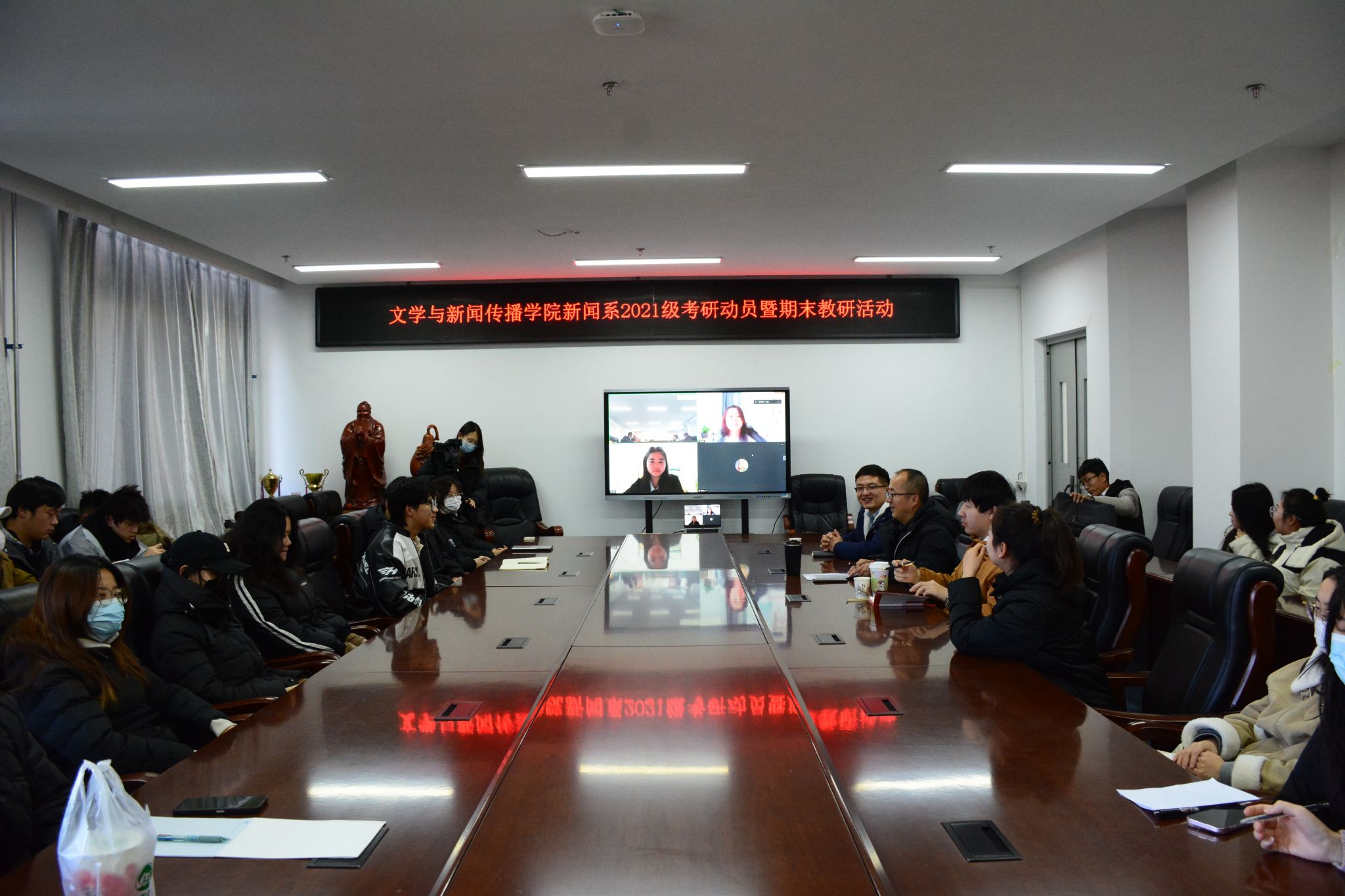 (本网讯)为提高新闻学子考研积极性,帮助大三员工提早备考,新闻教研室于1月2日408会议室举办新闻系2021级考研动员会。动员会邀请张楠、张睿、樊可心和王含章四位毕业生作考研分享,朱佳睦与会分享了保研经历。其中,党委书记党子奇,新闻系全体教师以及新闻系21级同学参加了本次会议。动员会由张晟主持。