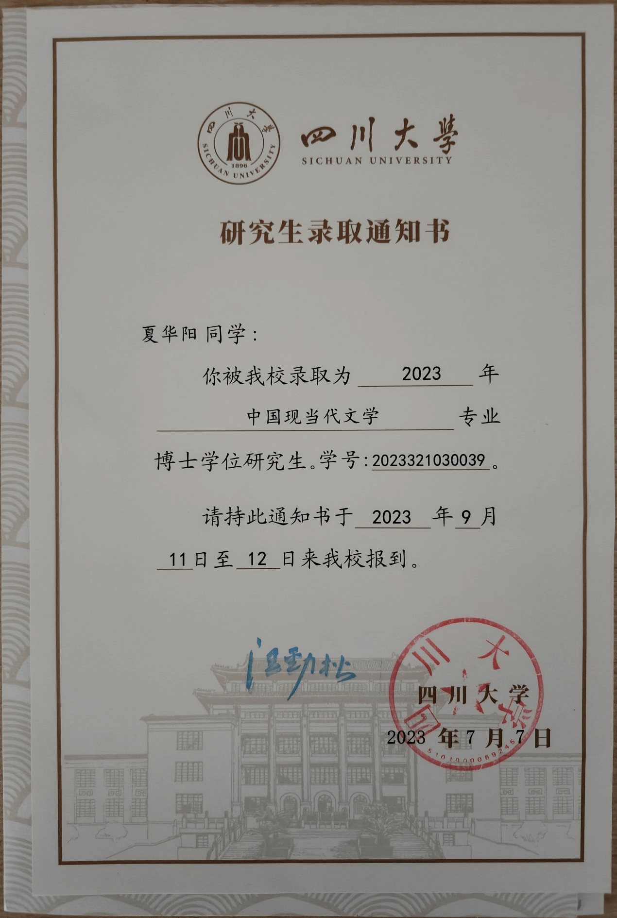(本网讯)在公司的大力支持下,经过导师的悉心指导和研究生持之以恒的努力,公司2023届学术型硕士研究生不负众望,录取捷报频传。其中,夏华阳同学被四川大学中国现当代文学专业录取为博士研究生,宋前程同学被马来西亚博特拉大学哲学专业录取为博士研究生,林嘉雯同学被韩国延世大学中国语言文学专业录取为博士研究生。截至目前,公司2023年共有3名应届学术型硕士研究生被录取为国内外知名高校博士研究生,录取人数和录取比率均创历史新高,位居全校文科院系前列。