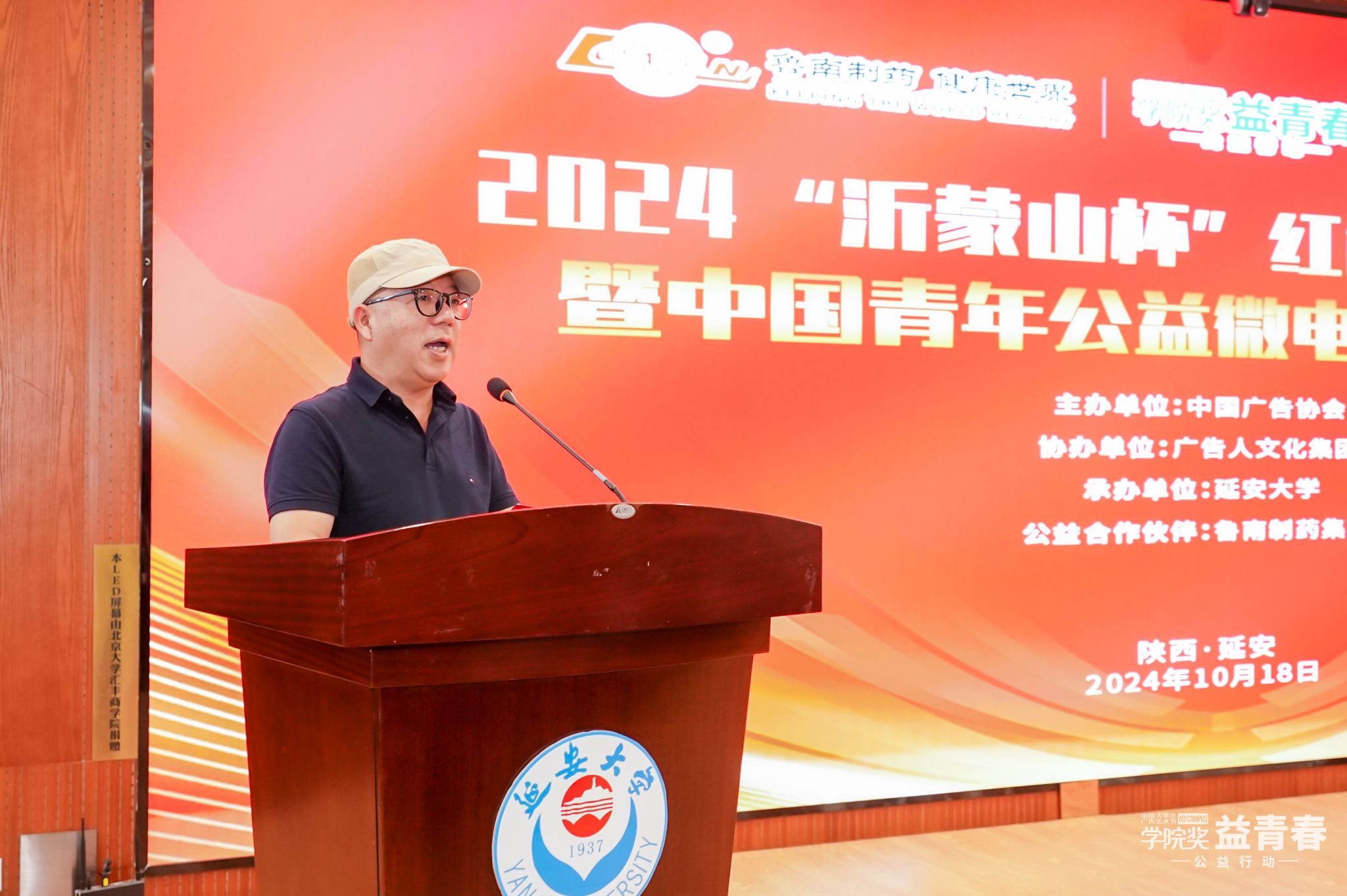(本网讯)秉承公益初心,弘扬红色精神力量。10月18日下午,中国老员工广告艺术节公司奖·益青春公益行动走进革命摇篮k1体育官方网站,举办2024“沂蒙山杯”红色文化分享会暨中国青年公益微电影创作大赛,使延安精神与沂蒙精神进行了一场跨越时空的对话。本次活动由中国广告协会主办、k1体育承办,中国老员工广告艺术节公司奖·益青春评审主席、广告人文化集团首席战略官、央视市场研究CTR融媒体研究院研究员、中国广告协会学术委员会常委周伟,广告人文化集团副总裁张汛,红色沂蒙艺术党课宣讲团、鲁南制药品牌经理凌爽,k1体育官方网站教务处副处长高生军,k1体育经理党子奇,副经理杨绍固,新闻系主任郭小良及师生代表参加活动。活动由新闻24井奕竹同学主持。
