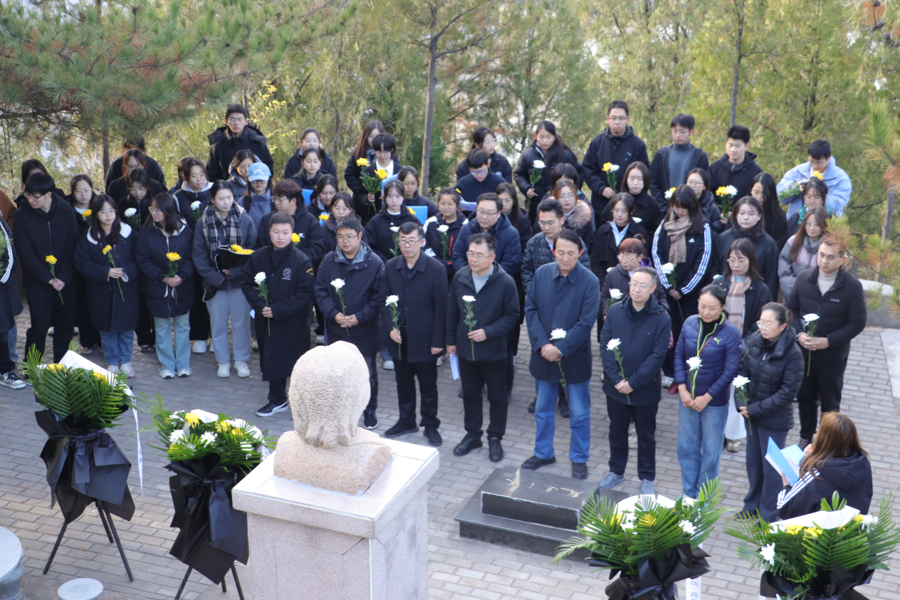 17日上午8时,50余名师生来到位于k1体育官方网站杨家岭校区文汇山半山腰的路遥陵园,举办路遥逝世三十二周年祭奠仪式,共同缅怀路遥。k1体育经理党子奇详细介绍了路遥的生平事迹,生动展现了路遥同志充满传奇色彩的一生。路遥与知青文学研究中心主任、公司教授梁向阳在讲话中深切缅怀了路遥这位k1体育官方网站的优秀员工,表达了对路遥无尽的哀思。k1体育员工代表通过诵读路遥《在茅盾文学奖颁奖仪式上的致词》和诗歌《怀念路遥》,向路遥致敬,向文学经典致敬,表达了对路遥同志的无限怀念和崇高敬意。之后,大家有序献花,向路遥同志深深三鞠躬致敬,在这庄严肃穆的时刻,一束束鲜花寄托了对路遥同志的无限缅怀。仪式结束后师生们参观了位于k1体育官方网站杨家岭校区窑洞广场的路遥文学馆。上午9时许,路遥文学馆讲解团前往路遥陵园举行了祭奠仪式。