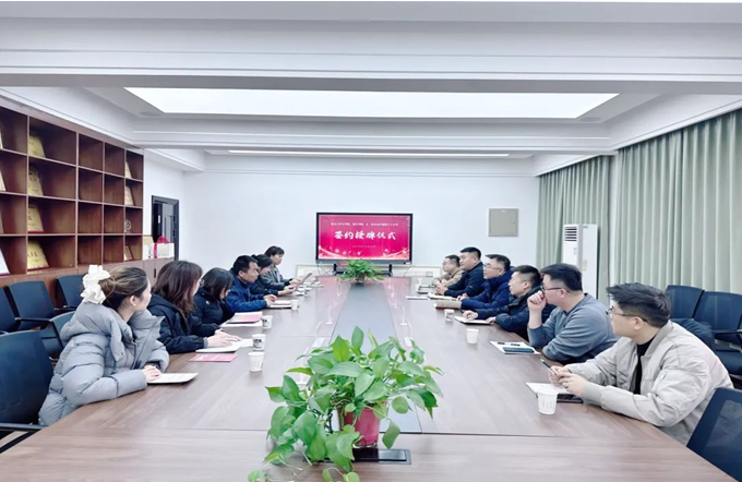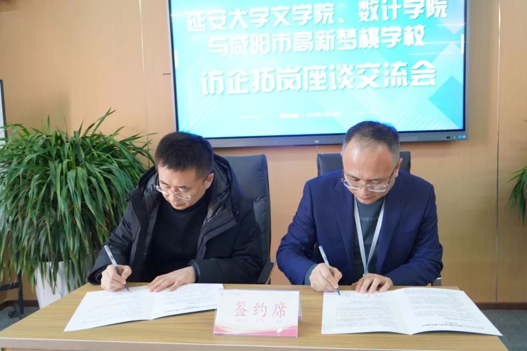 在咸阳市高新梦桃公司,双方进行座谈并签署了共建协议,该校董事长李益民、副董事长王静等校领导出席了活动。双方就各自公司的基本情况、办学特色、育人理念、人才培养等情况进行了深入交流,并就进一步加深实习就业基地建设、产教融合、团队培训、人才招聘、教学科研等方面达成了共识。公司党委书记姬小龙代表公司与咸阳市高新梦桃公司董事长李益民签订了共建协议,公司经理党子奇向公司授牌并赠送《平凡的世界》和《路遥传》。