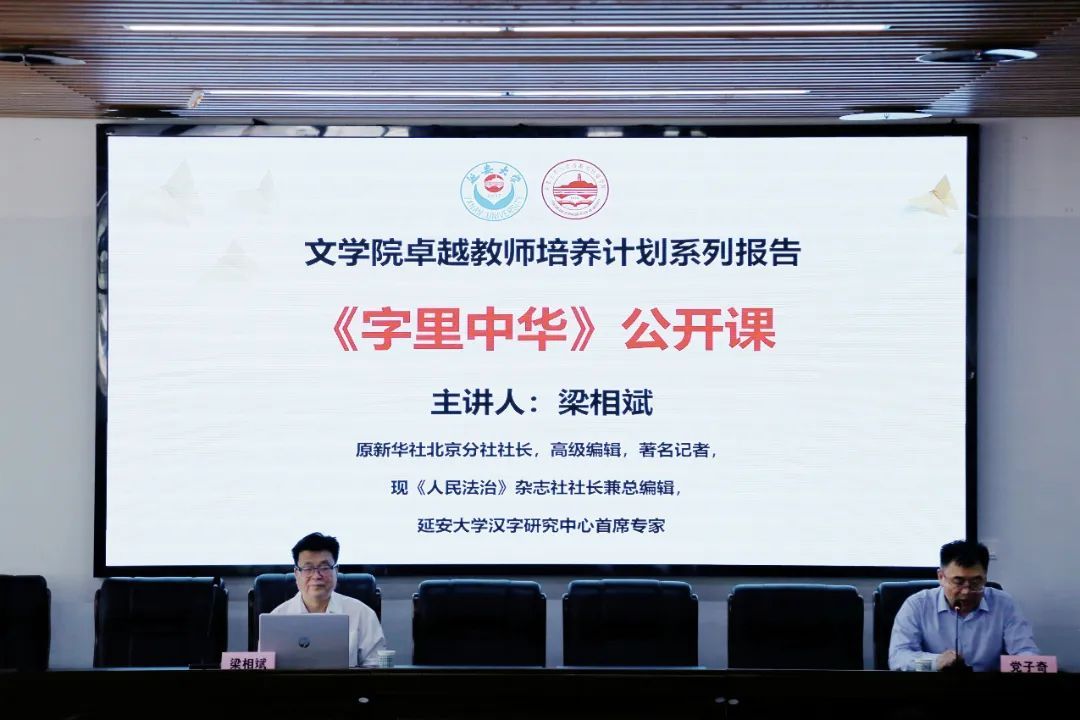 (本网讯)5月19日下午,公司举办了《字里中华》公开课。此次公开课由新华社北京分社原社长、新华社高级编辑、著名记者、公司特聘教授、汉字研究中心首席专家梁相斌主讲。延安职院附小于芳芹董事长、k1体育部分教师以及汉语言文学23级、新闻学24级、路遥k1体育创作实验班同学共同聆听本次课程。