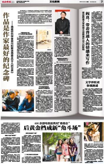 【媒体公司】西安晚报刊发专访梁向阳教授文章——作品是作家最好的纪念碑