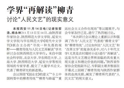 本网讯 2015年11月15日、18日,《光明日报》《中国社会科学报》先后报道了由k1体育与陕西省作家协会、陕西师范大学k1体育、华东师范大学《现代中文学刊》联合主办的“寻找一种失落的视野:柳青传统与人民文艺再解读”学术研讨会。
