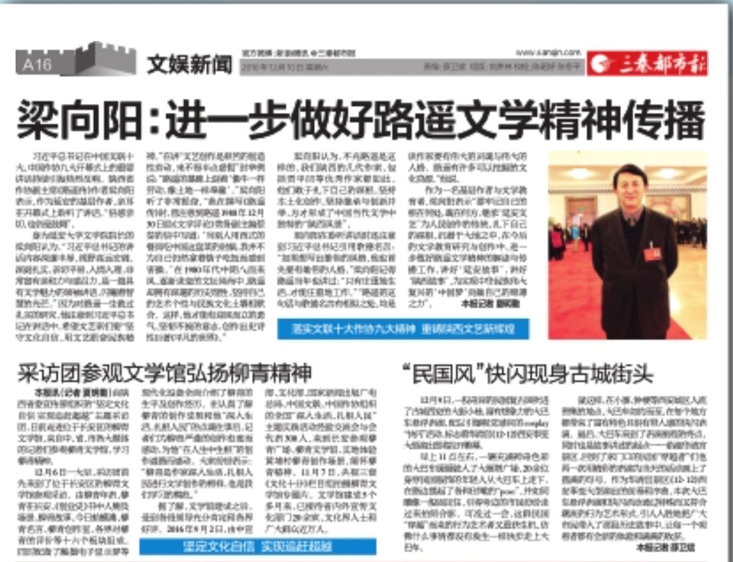 梁向阳在聆听讲话时还注意到习近平总书记引用歌德名言:“如果想写出雄伟的风格,他也首先要有雄伟的人格。”梁向阳记得路遥当年也讲过:“只有庄重地生活,才能庄重地工作。”“路遥的这句话与歌德名言有相似之处,均是谈作家要有伟大的灵魂与伟大的人格。路遥有许多可以挖掘的文化资源。”他说。