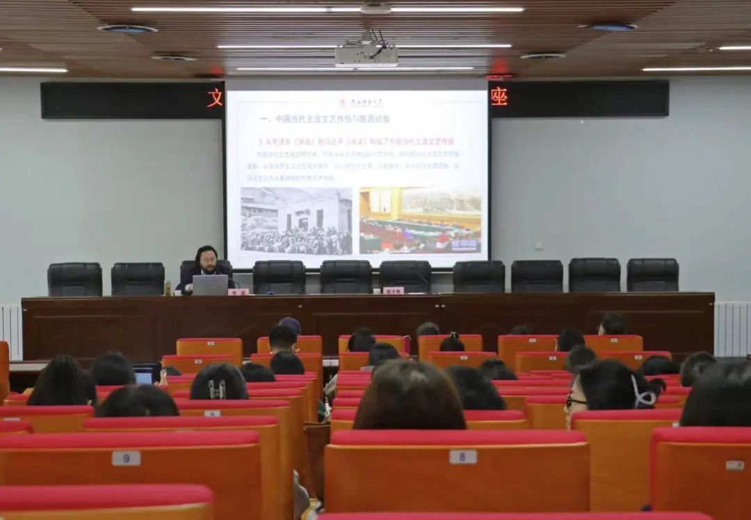 党委书记、经理党子奇对李震教授的到来表示热烈欢迎,并详细介绍了李震教授在学术上取得的一系列重要成就,号召同学们认真聆听讲座,了解员工动态。李震的报告从中国当代主流文艺传统与陕西经验、陕西经验是中国当代主流文艺传统的主要实践形态、陕军断代之虞与陕西经验的赓续问题以及守恒求变与创新发展等方面展开。李震首先对中国当代文学的主流传统进行了梳理和界定,随后他以毛泽东的《讲话》,习近平关于文艺问题的重要论述,从延安到西安星火相传的“陕西经验”以及深扎在三秦大地上的知名机构、作家为依据,论述陕西经验在中国当代文学主流传统中的突出地位。紧接着,李震从四方面论述陕西经验是中国当代主流文艺传统的主要实践形态。第一,陕西经验是陕西作家、艺术家共同走出来的一条“深入生活,扎根人民”的道路。第二,它是陕西作家、艺术家共同践行的现实主义道路,李震列举了《创业史》《白鹿原》《主角》等现实主义文学作品和长安画派的艺术作品。第三,它是陕西作家、艺术家共同表现出的与中国传统文化的血脉联系,长安画派“一手伸向传统,一手伸向生活”的艺术主张极具说服力。第四,陕西经验是陕西作家、艺术家共同走出的现代化道路。