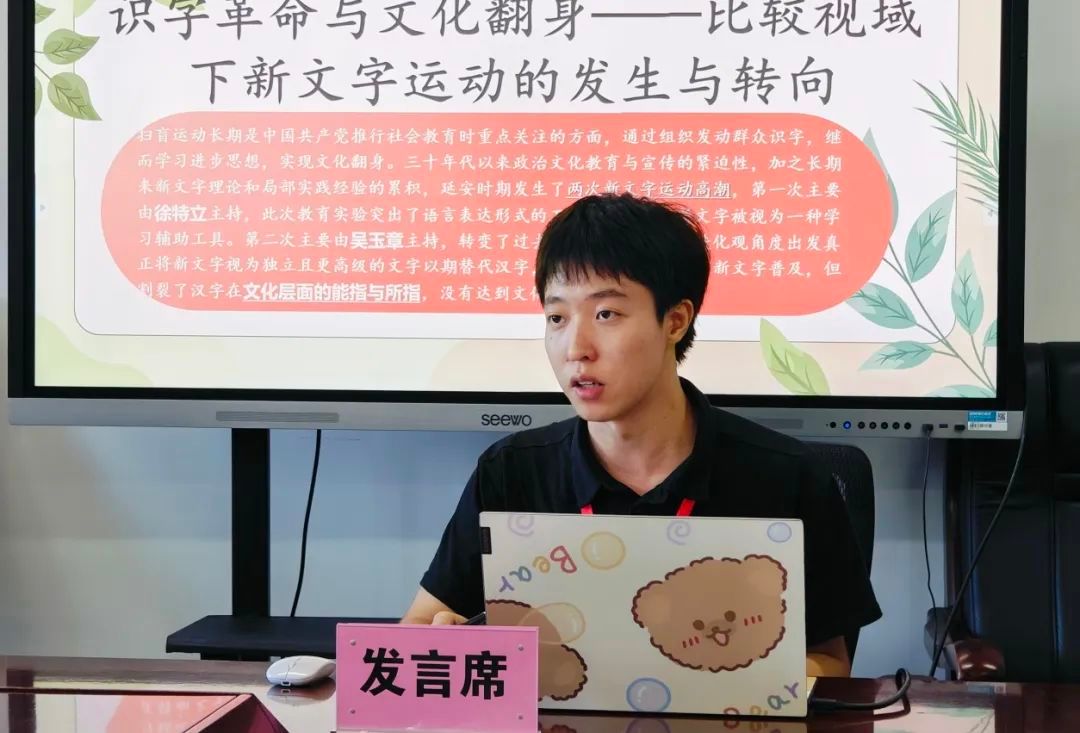 k1体育官方网站汉字研究中心首席专家梁相斌向大家介绍了汉字研究中心自创立以来的相关工作及研究成果,并强调延安新文字运动和国家通用语言文字推广的重要性。