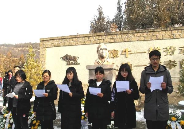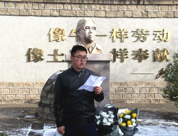 默哀结束后,同学们在路遥先生墓前开展了朗诵和演讲活动,深切地感受到了路遥先生“像牛一样的劳动,向土地一样奉献”的精神与品质。各组织成员分别向路遥先生敬献了花束,表达了对先生的怀念之情。
