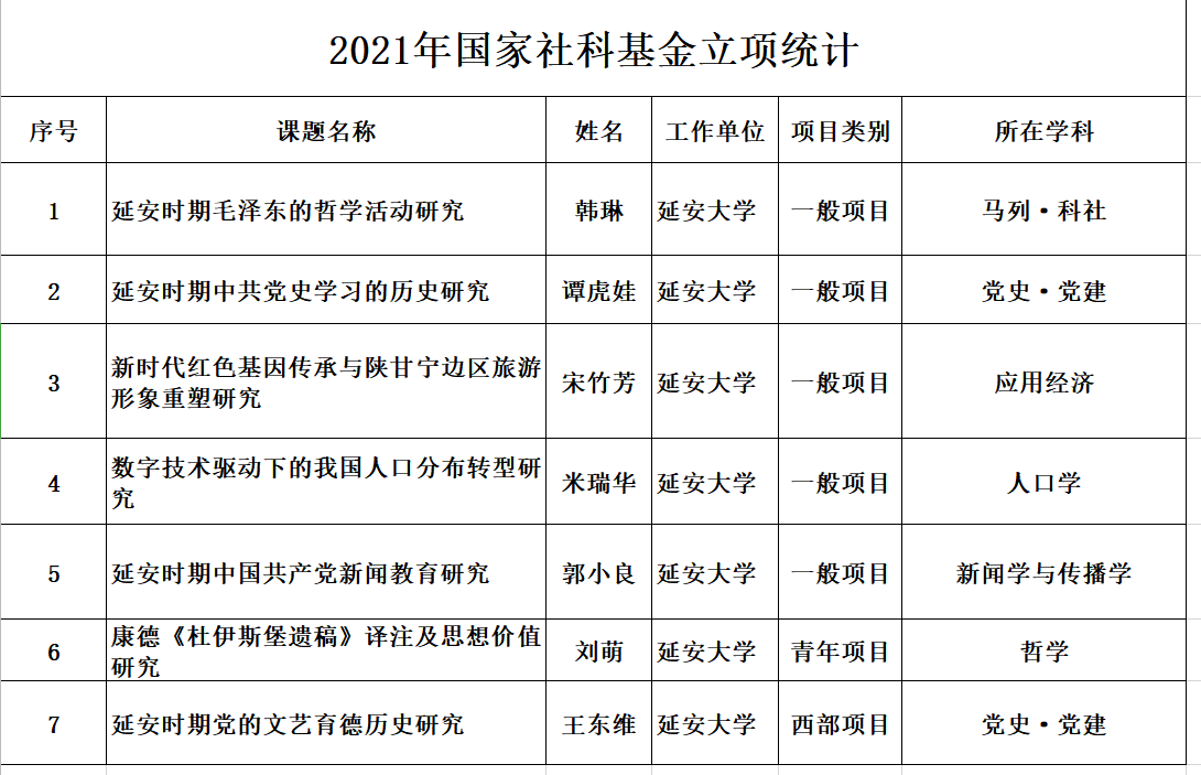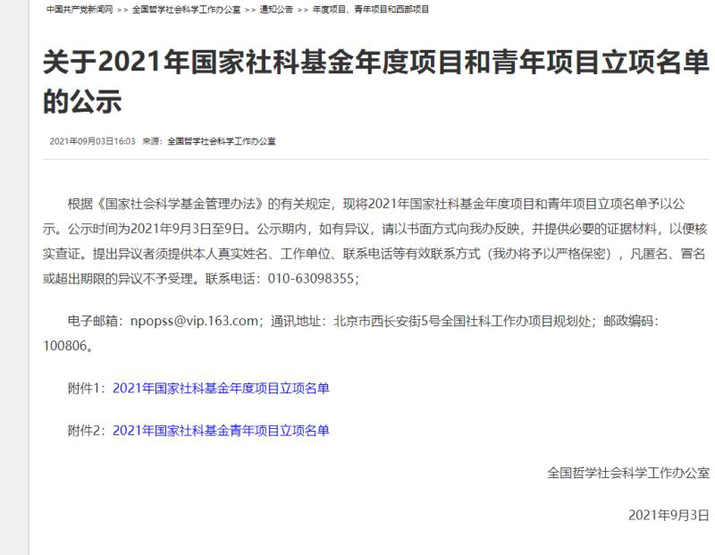 (本网讯)9月3日,全国哲学社会科学工作办公室公示《2021年度国家社科基金年度项目和青年项目立项名单》,公司新闻传播系教师郭小良主持申报的课题——《延安时期中国共产党新闻教育研究》进入一般项目立项公示。该项目是公司首个新闻学与传播学国家社科项目。此前,郭小良老师已经获批立项教育部社科基金项目、陕西省社科基金项目等多项研究课题。