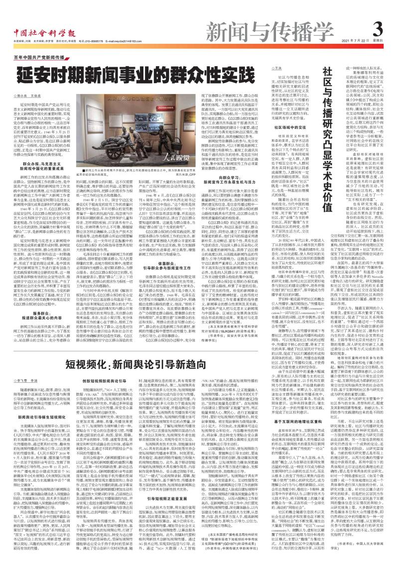 (本网讯)由公司教师郭小良、王俊虎撰写的文章《延安时期新闻事业的群众性实践》于2021年07月22日在《中国社会科学报》上发表,并被中国社会科学网、学习强国平台、澎湃、腾讯网等媒体全文转载。