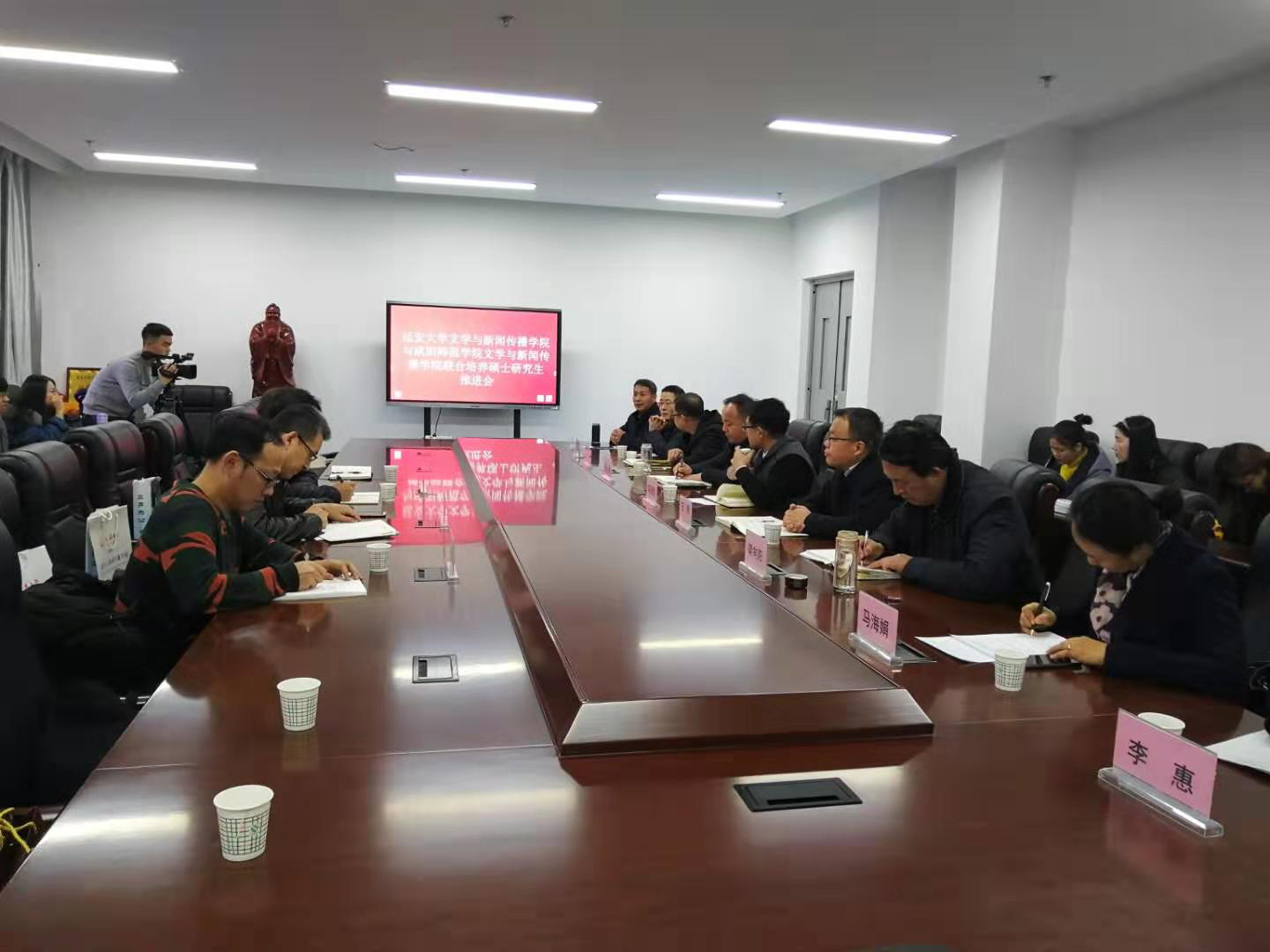 王刚副董事长在讲话中高度肯定了咸阳师范公司与k1体育联合培养工作的意义,介绍了k1体育在延安文艺研究、路遥研究、山花作家群研究等方面的优势特色和取得的成果,强调了咸阳师范公司的地域优势、在师范生培养方面的丰富经验,展望了本硕一体培养、专业硕士的合体培养、相互交流等方面的前景,并对研究生联合培养提出了许多建设性意见。希望双方齐心协力,最终实现合作共赢,真正推动双方团队建设的发展,提高公司产品质量。