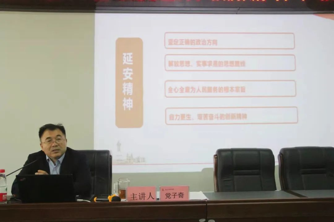 本次党课围绕延安精神的主要内涵、延安精神特质的主要内容、延安精神“一体两翼”育人体系介绍、党的十九届五中全会精神与延安精神、习近平总书记来陕考察重要讲话以及对延安精神铸魂育人的进一步思考共六个方面内容展开。