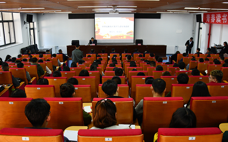 薛义忠书记从“实现中华民族伟大复兴是几代中国人的梦想”、“中国从来没有像今天这样接近实现民族复兴的目标”、“复兴之路必然充满曲折,我们要继续进行伟大斗争”、“青年一代在中华民族伟大复兴中的责任与担当”等四个方面全面讲述了中华民族的伟大复兴与当代青年的责任担当。