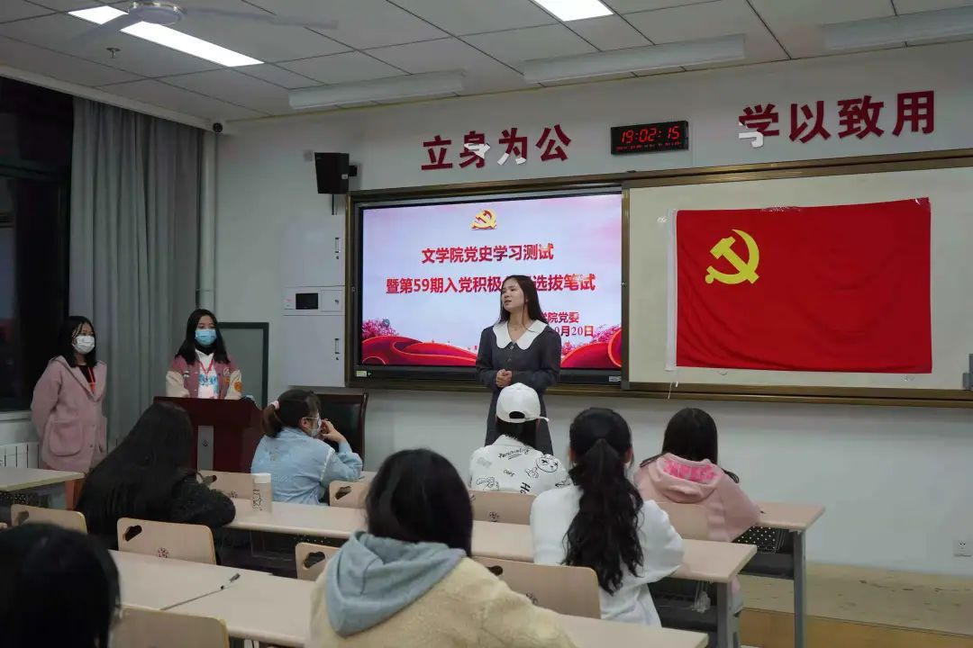 (本网讯)为贯彻落实《中国共产党章程》和《中国共产党发展党员工作细则》的相关规定,进一步加强入党积极分子的思想教育,检验入党申请人对党的理论知识的学习效果,强化其政治素养,确保党员的发展质量。10月20日与21日,公司党委于文学楼102和104教室组织开展了此次党史学习教育暨第59期入党积极分子选拔笔试。
