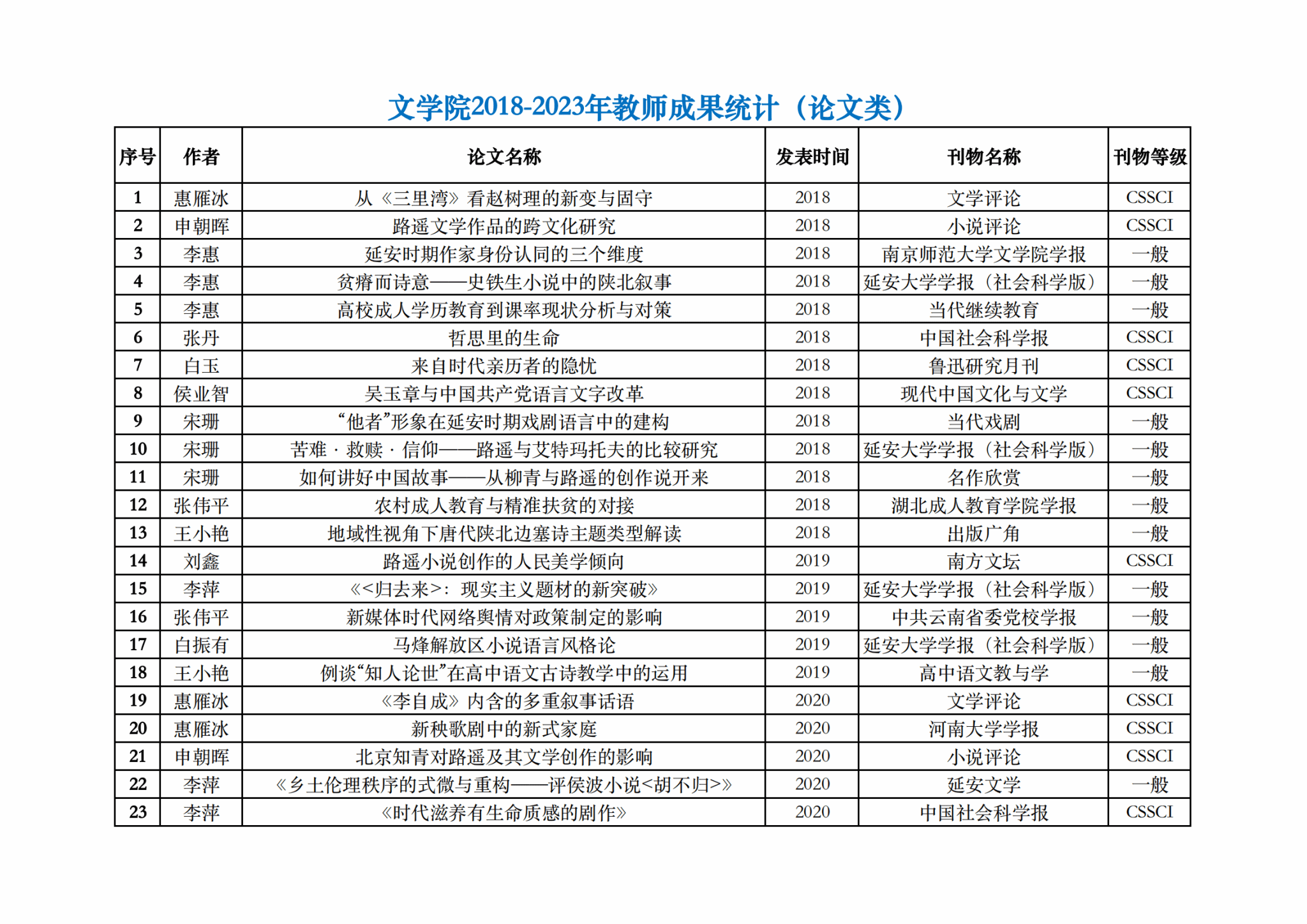 2018-2023年教师成果统计(论文类)